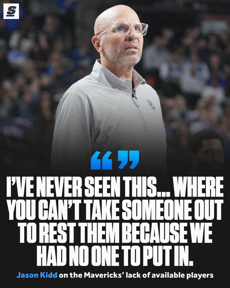 谈到球队遭遇大面积伤病潮,基德无奈表示:“我从来没有见过这种情况,从来没有经历过这样的比赛,因为我们没有人可以上场,所以不能让球员下场休息。”