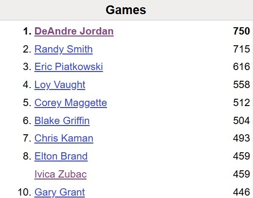 祖巴茨为快船出战460场比赛 超越埃尔德-布兰德&上升至队史第八位