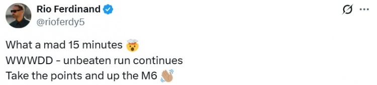 2025-11-09 00:03:00费迪南德社媒评论曼联2-2热刺:疯狂的15分钟,曼联5场不败延续